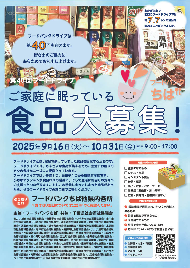 今年も「第40回フードドライブ」を開催いたします。